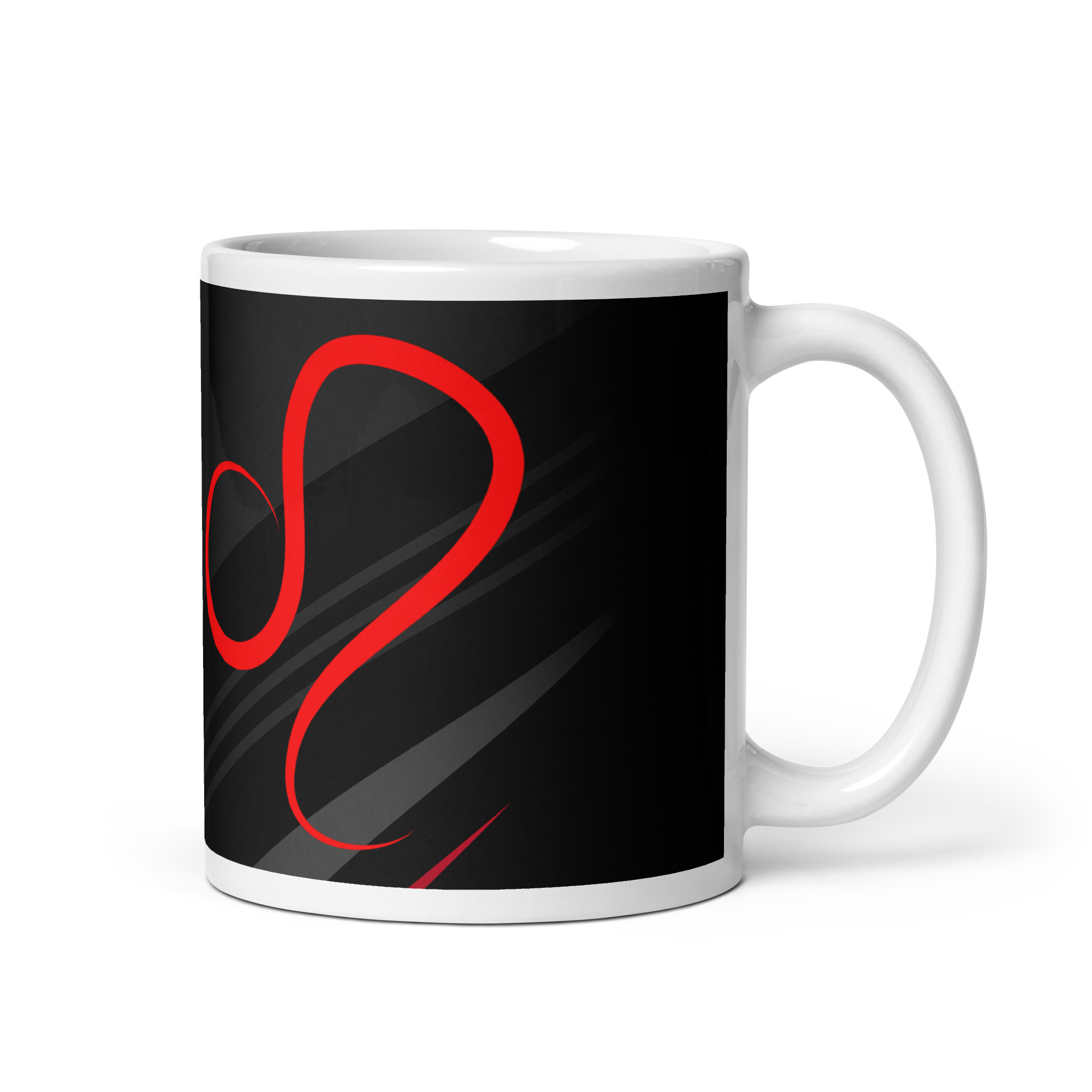 Le rouge et le noir imposent une ambiance gaming directe. Le visuel panoramique crée une continuité autour du mug. Aucun angle vide. Un cadeau original pour les joueurs du signe Lion.