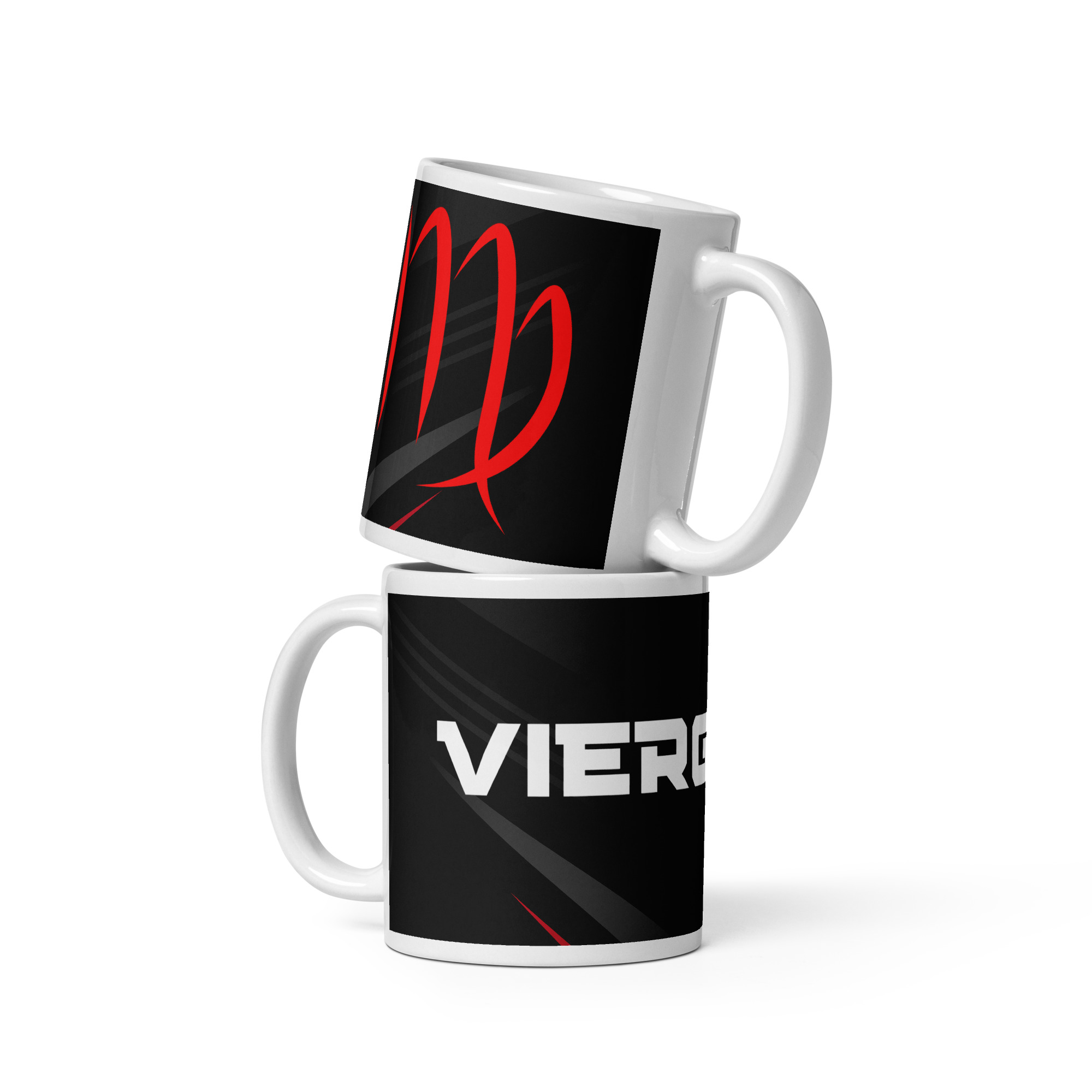 Le rouge et le noir imposent une ambiance gaming directe. Le visuel panoramique crée une continuité autour du mug. Aucun angle vide. Un cadeau original pour les joueurs du signe Vierge.