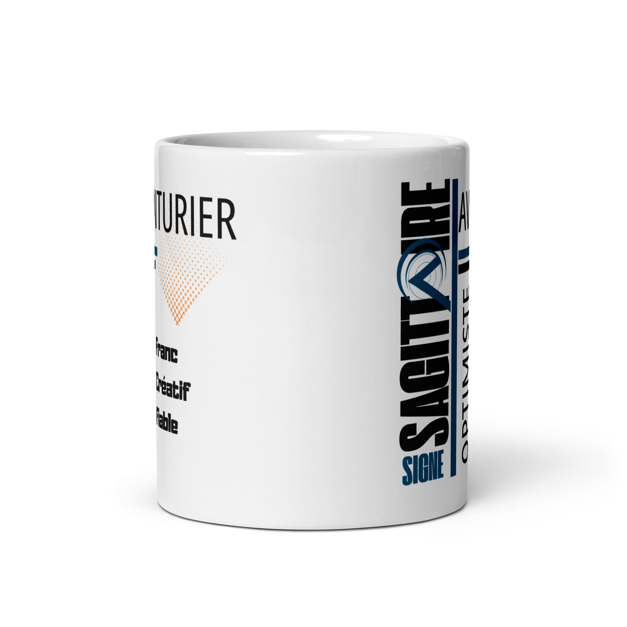 Affichez votre force dès le petit-déjeuner avec ce mug au design moderne conçu pour l’homme Sagittaire. C’est un hommage aux traits de caractère qui vous définissent : Aventurier, Optimiste et Franc.