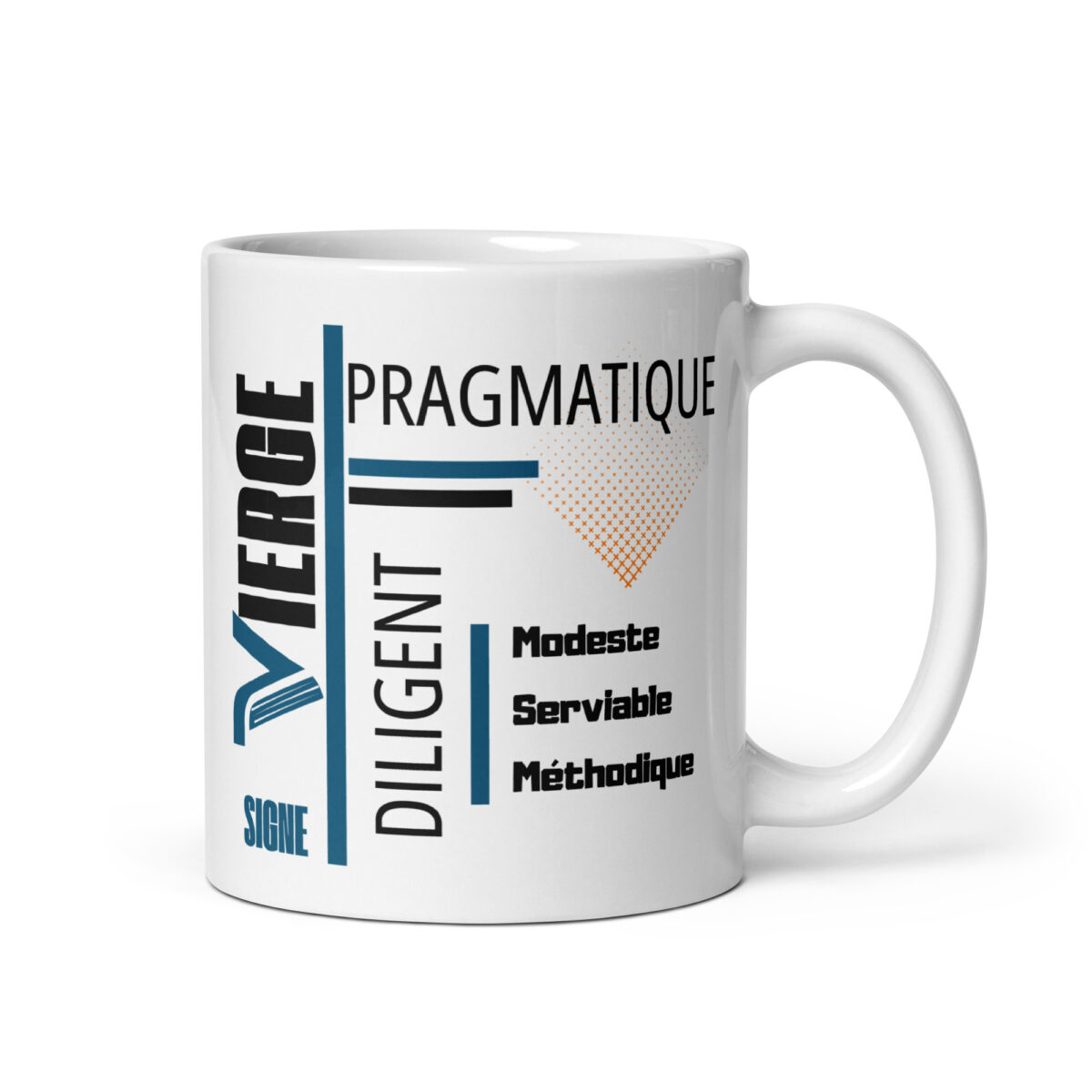Affichez votre force dès le petit-déjeuner avec ce mug au design moderne conçu pour l’homme Vierge. C’est un hommage aux traits de caractère qui vous définissent : Pragmatique, Diligent & Modeste.