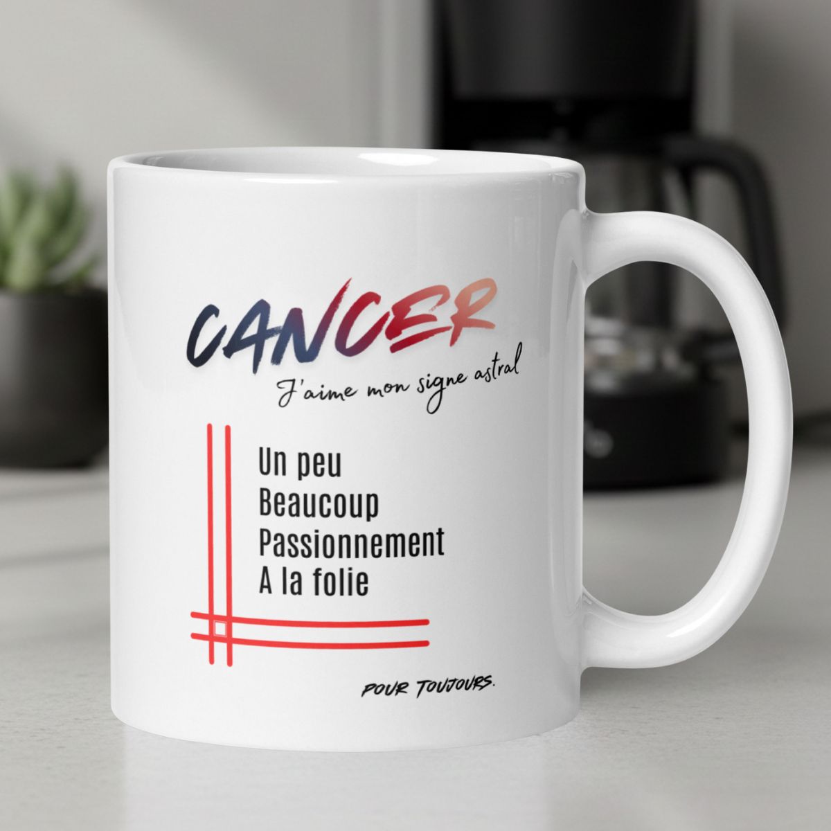 Mug pour homme Cancer | « Un peu, Beaucoup, Passionnément, À la folie » – Cadeau Tendance Astro