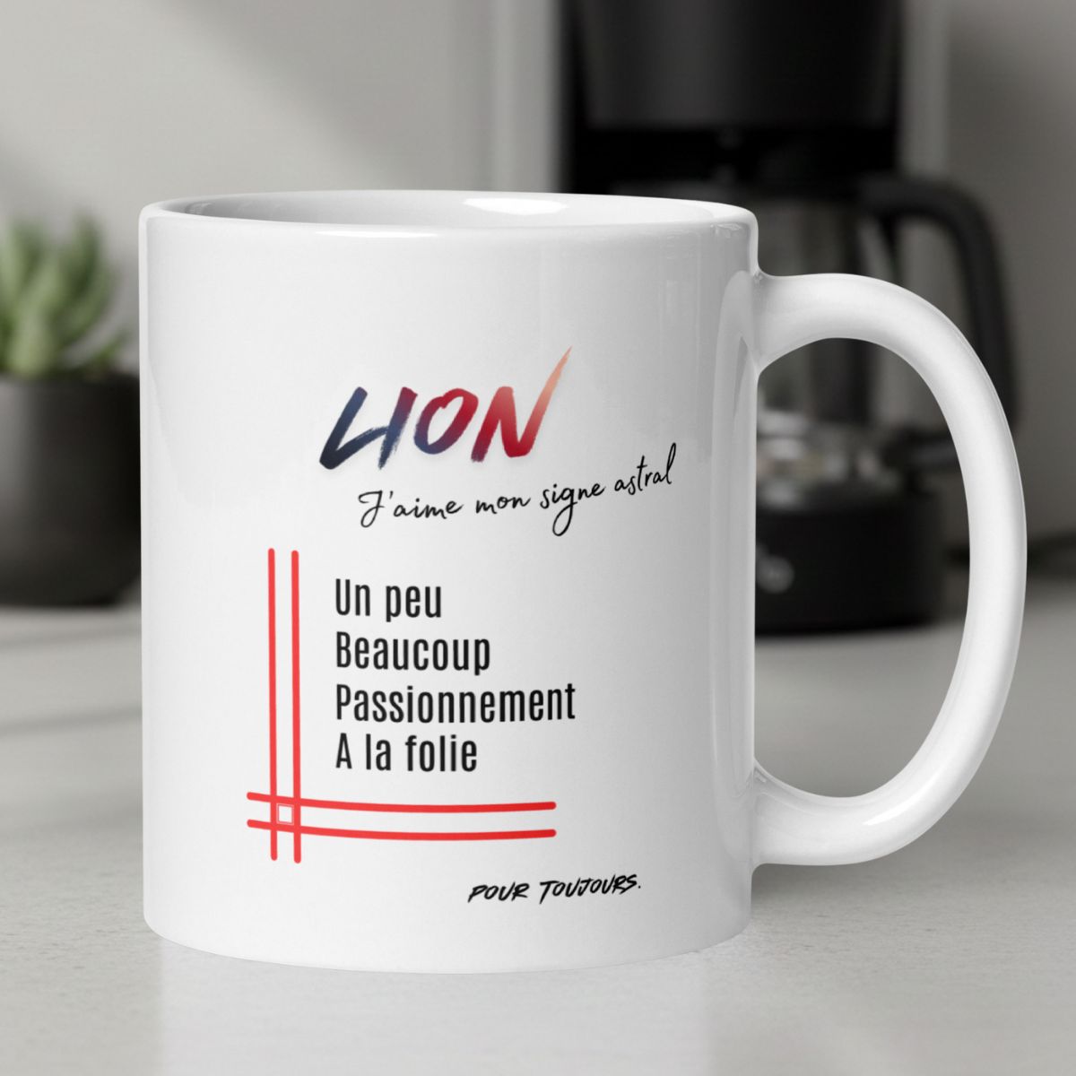 Mug pour homme Lion | « Un peu, Beaucoup, Passionnément, À la folie » – Cadeau Tendance Astro