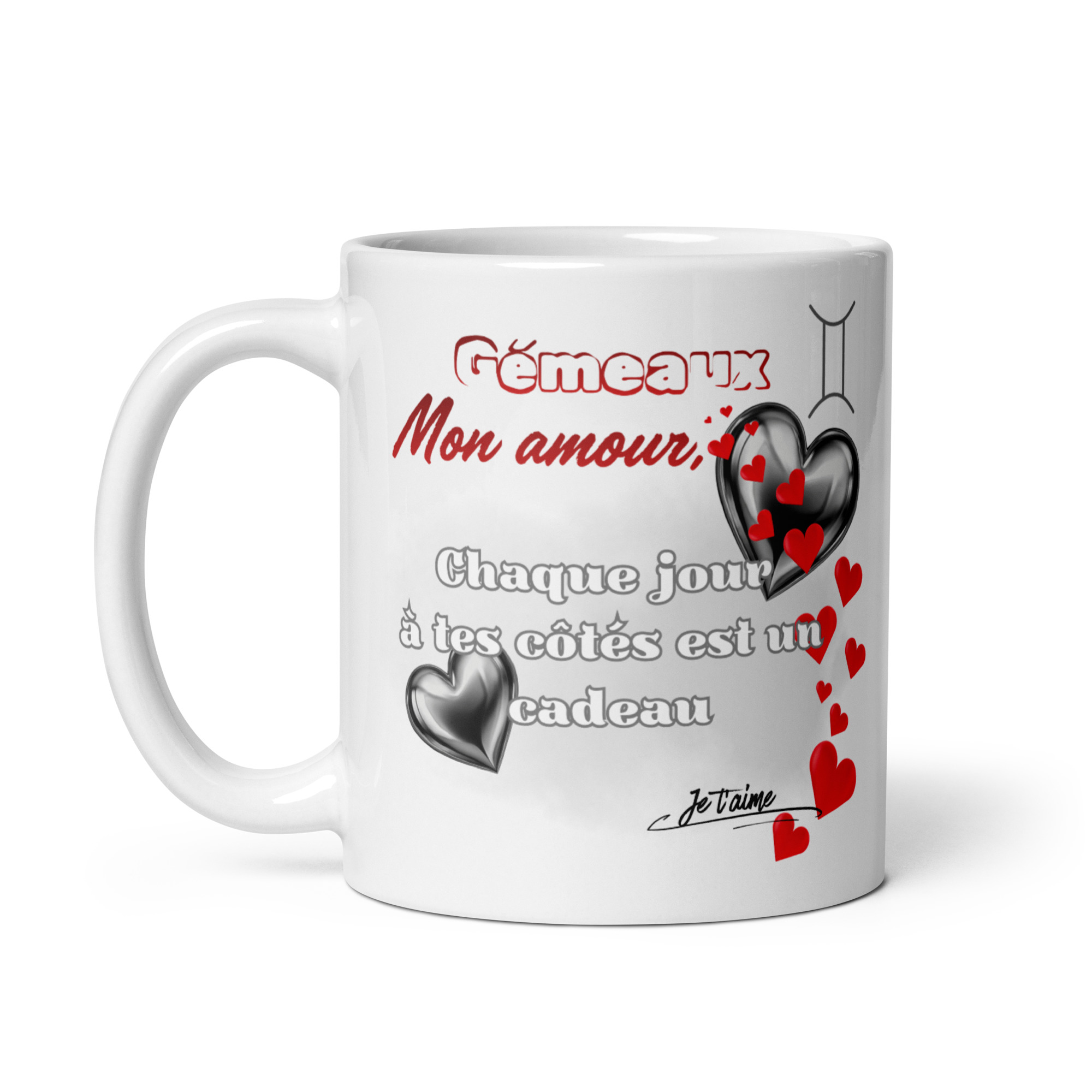 L’attention idéale pour faire chavirer le cœur de votre partenaire du signe Gémeaux ! Mêlant poésie et zodiaque, ce mug affiche ce doux constat : « Chaque jour à tes côtés est un cadeau ». Une surprise de choix pour la Saint-Valentin ou pour célébrer, tout simplement, le bonheur d’être ensemble, un geste tendre, à l’image de votre Couple Romantique.