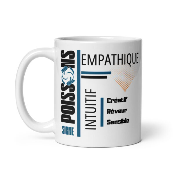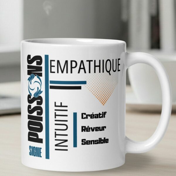 - Affichez votre force dès le petit-déjeuner avec ce mug au design moderne conçu pour l'homme Poissons. C'est un hommage aux traits de caractère qui vous définissent : Empathique, Intuitif et Créatif. Design exclusif : Un mélange élégant de typographies structurées et d'une touche de couleur orange dégradée pour un look résolument masculin. Qualités mises à l'honneur : Une source de…