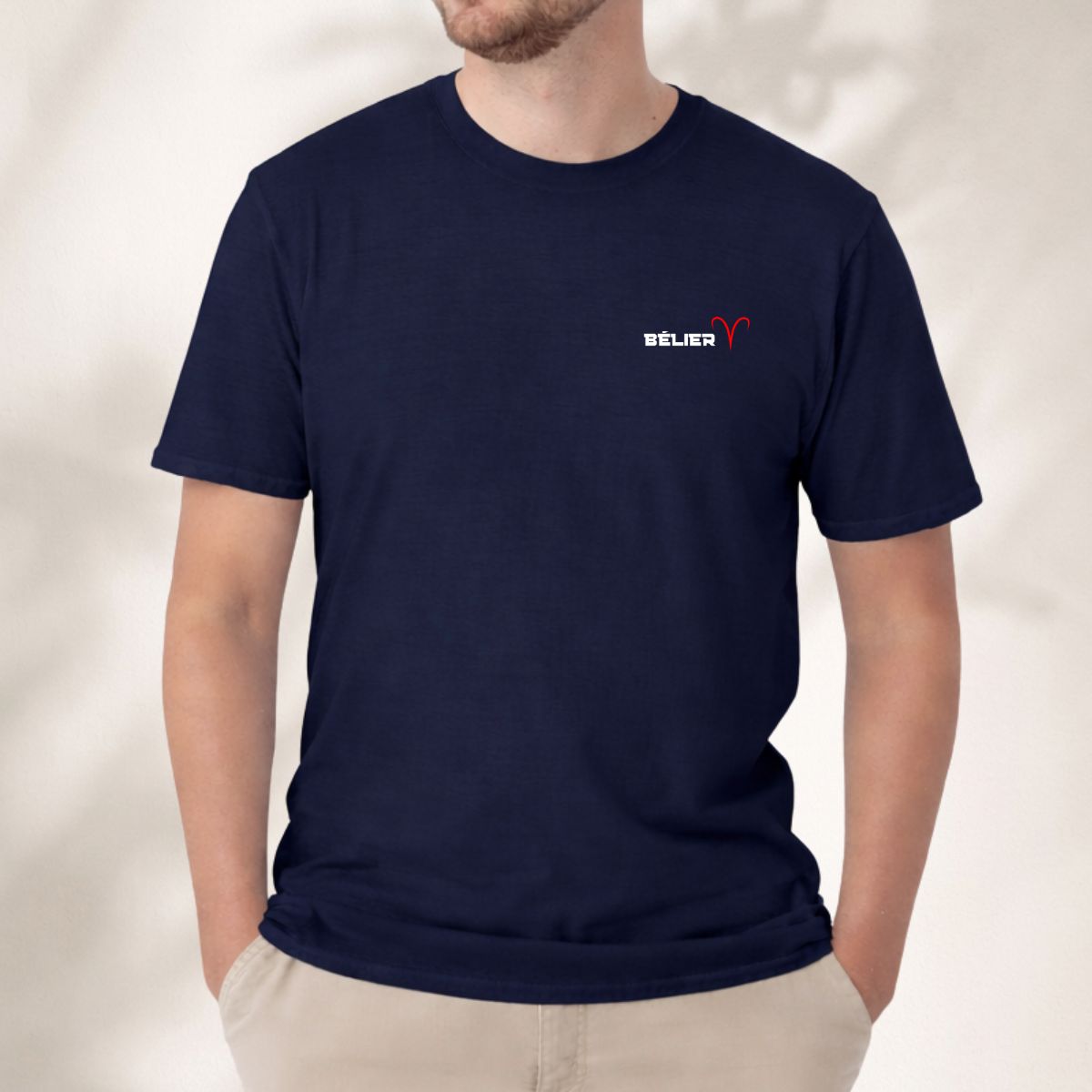 T-shirt 100% Coton Homme – Col Rond – Manches Courtes – Signe Zodiaque Bélier
