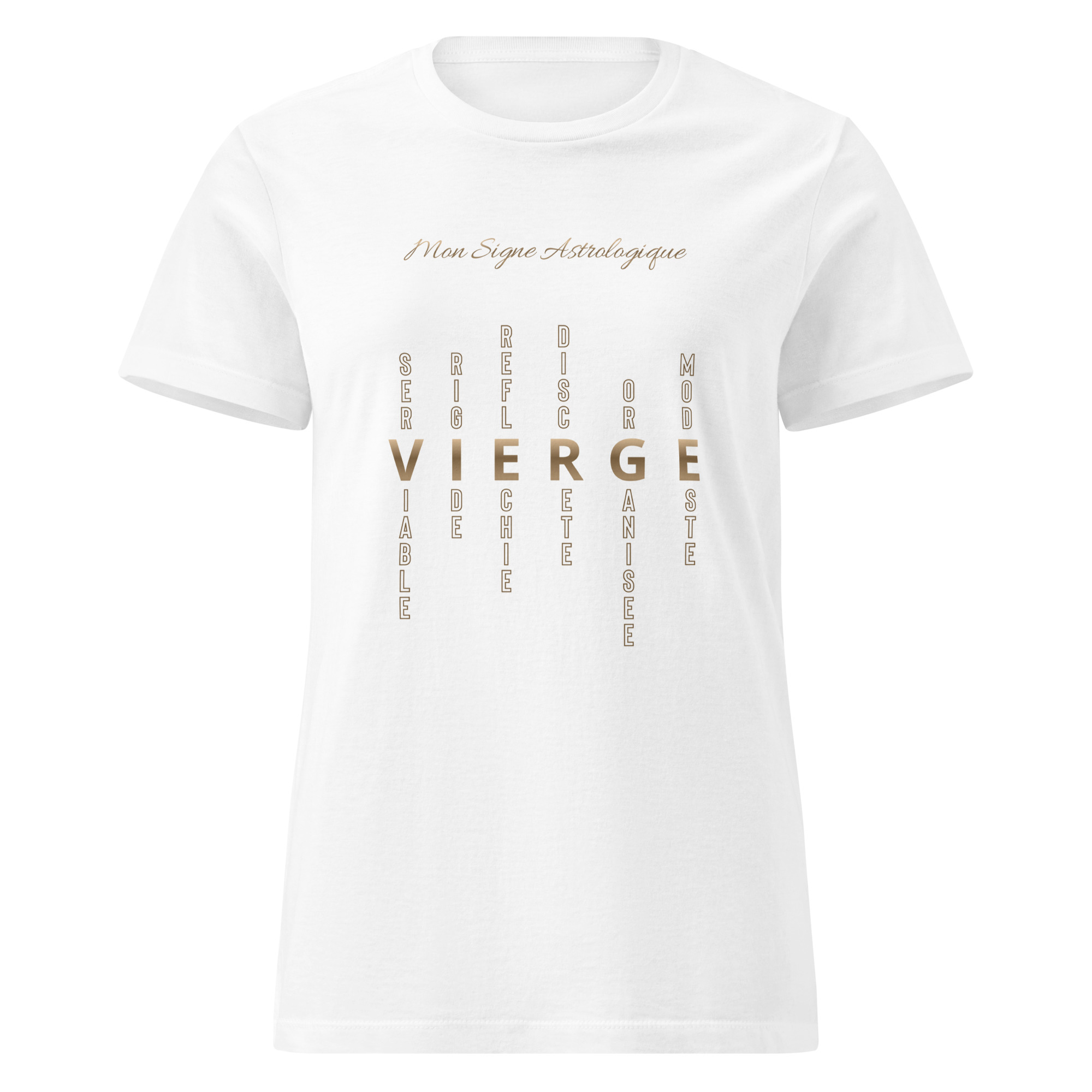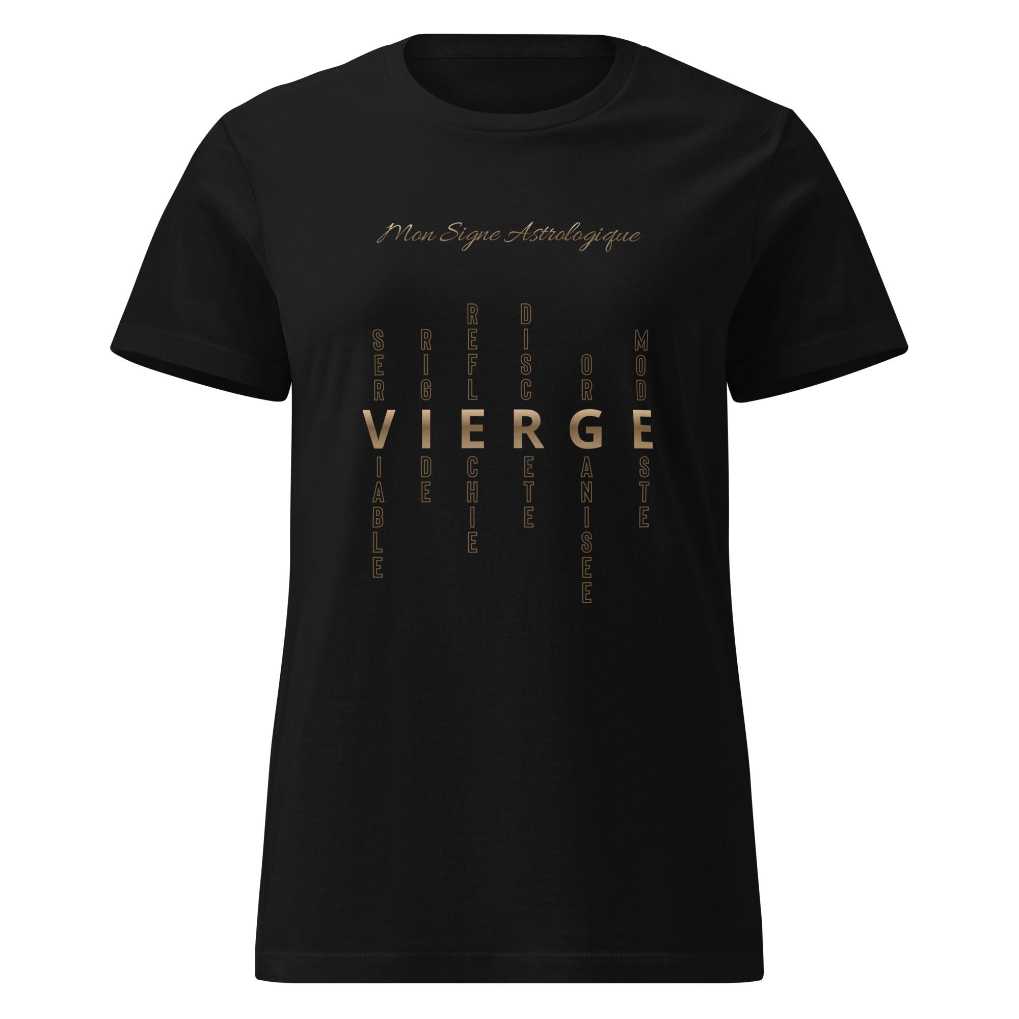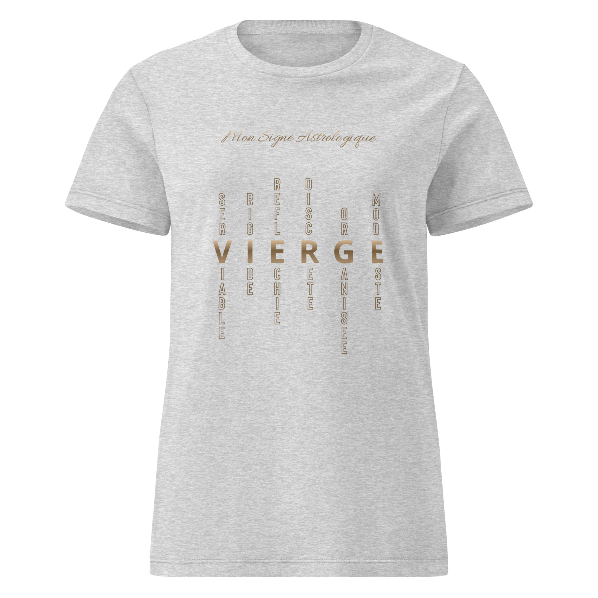 T-shirt pour femme Vierge au design ‘mots-croisés’. Une typographie moderne qui dévoile votre personnalité. Pensé pour celles qui veulent afficher leur signe astro au grand jour.