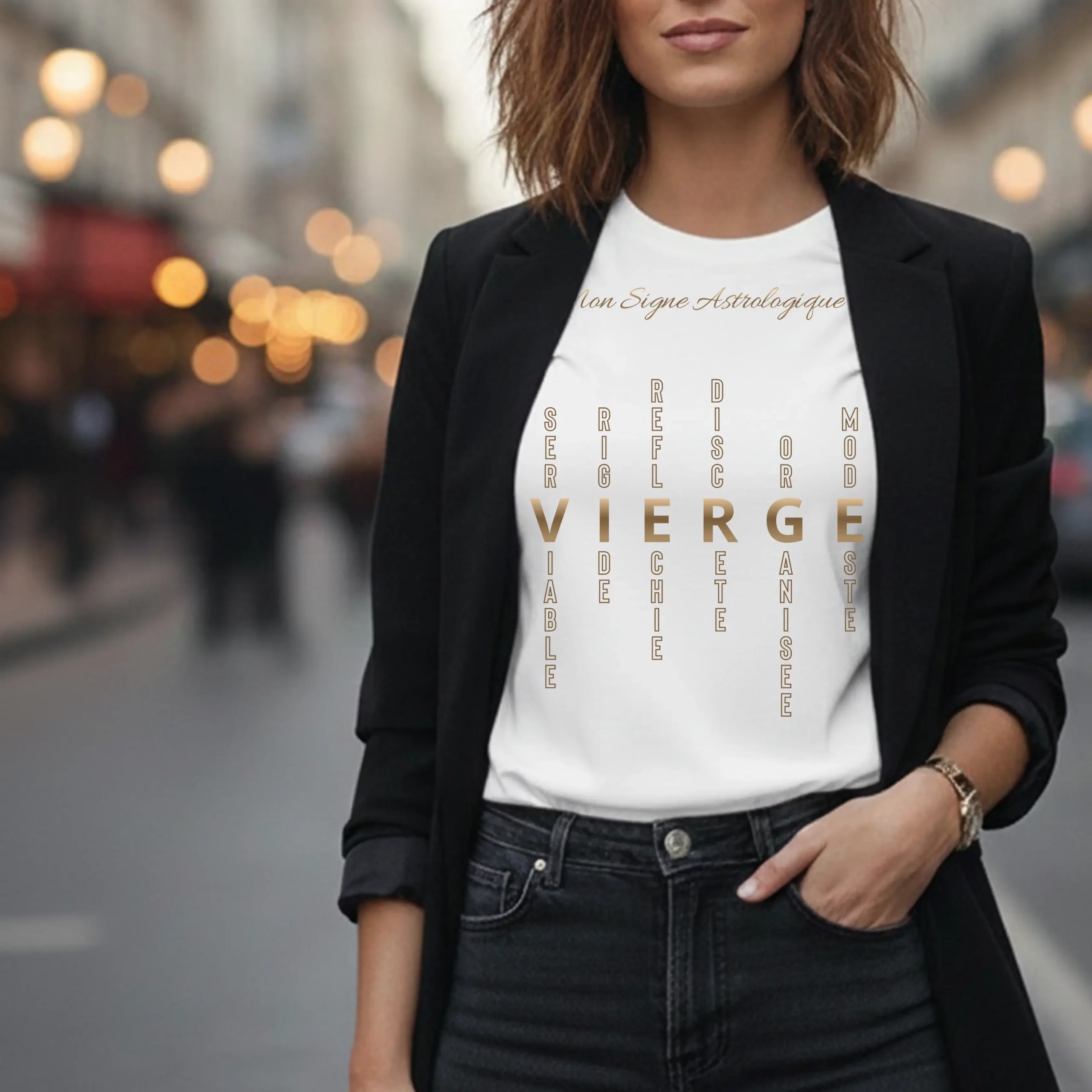 Ce t-shirt graphique revisite l’astrologie avec un design typographique façon mots-croisés. Au-delà du signe, il affiche ce qui vous définit vraiment. On y retrouve vos grandes forces mais aussi ces petits traits qui font votre charme.