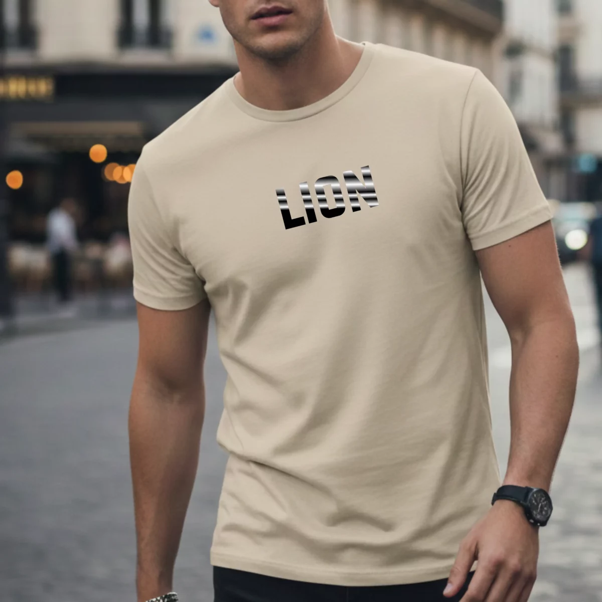 Ce modèle ne s’embarrasse pas de détails superflus : un lettrage massif « LION » fendu par des rayures obliques pour un rendu brut. Un design conçu pour ceux qui imposent leur propre mesure et préfèrent la force du style à l’agitation des mots. C’est le cadeau pour un homme né sous le signe du Lion qui privilégie la force brute du style à l’agitation des mots.