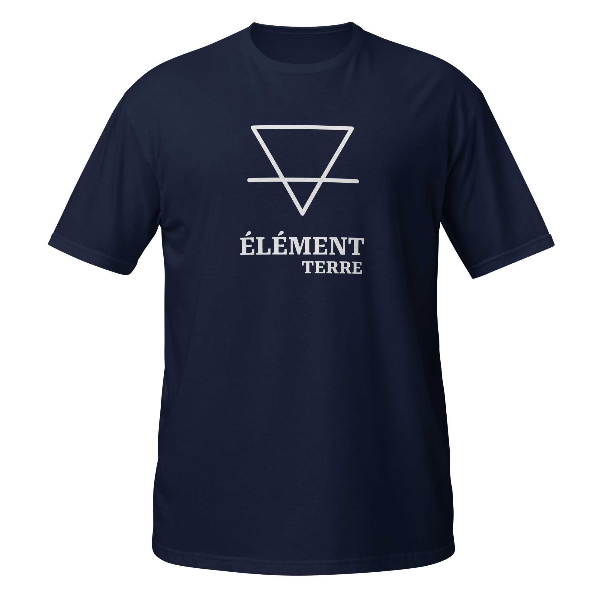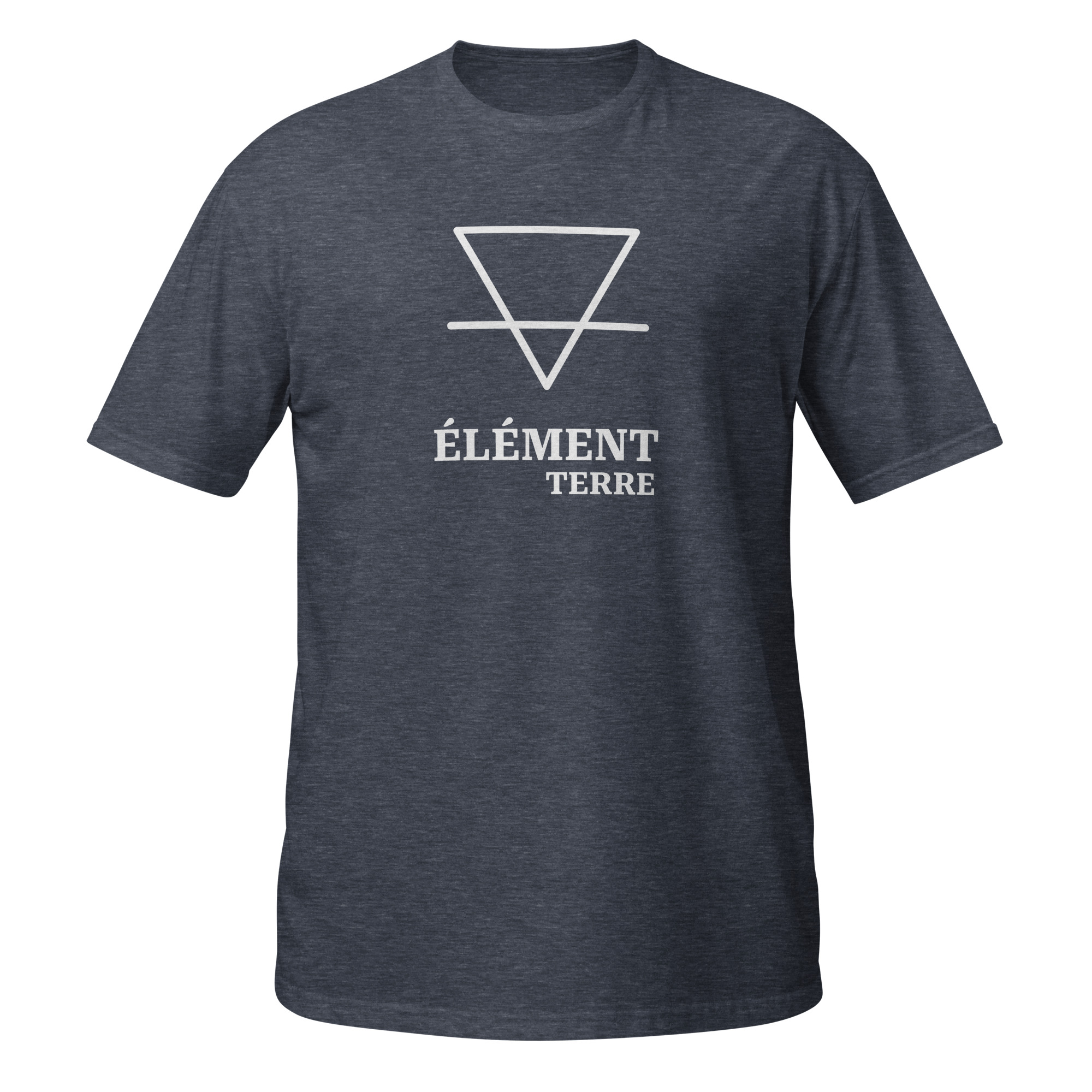 • Motif imprimé : Symbole élémentaire TERRE (triangle inversé barré) avec le texte « ÉLÉMENT TERRE » en dessous.