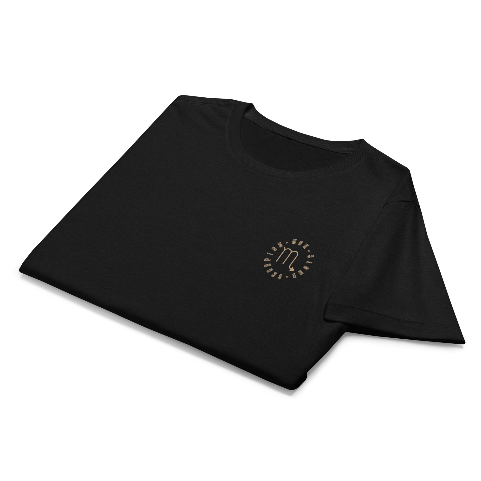Affirmez votre identité astrale avec subtilité. Ce t-shirt minimaliste célèbre la femme Scorpion. Un statement mode en coton, conçu pour celles qui maîtrisent l’art du chic effortless sans jamais compromettre leur allure.